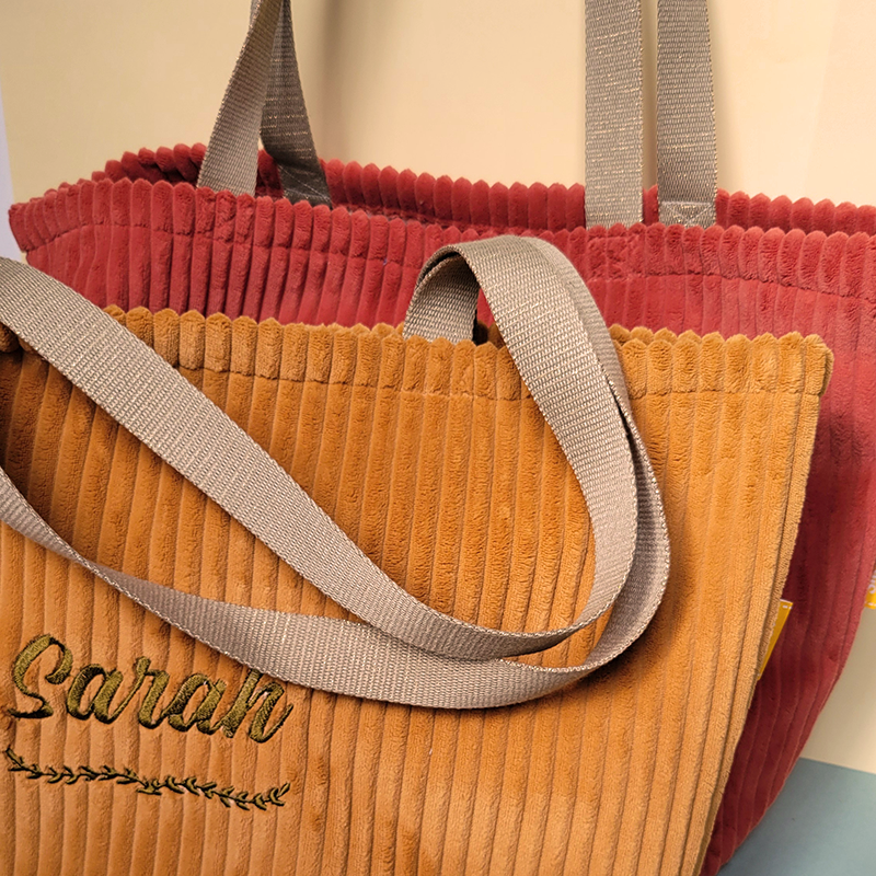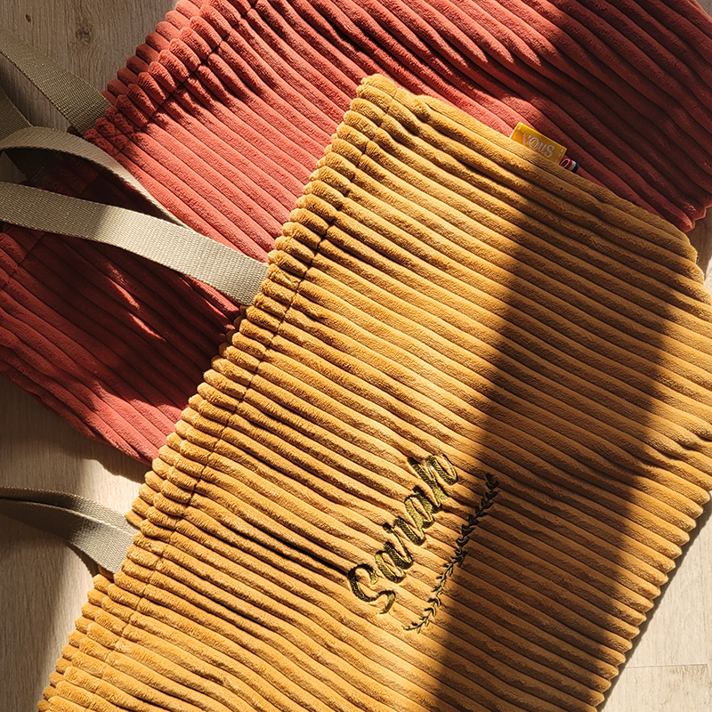 Magnifique cabas en gros velours côtelé super doux. Idéal également pour aller au marché, pour les affaires de bébé ou juste pour se balader. Un petit bijou fabriqué dans notre atelier à Toulouse.
