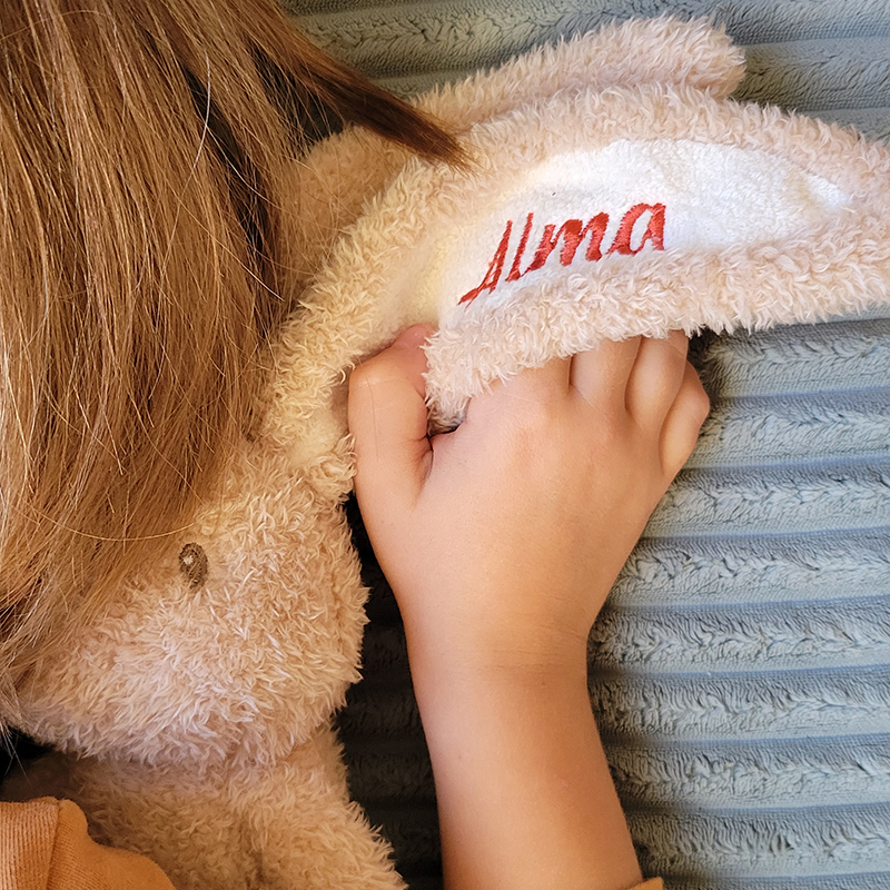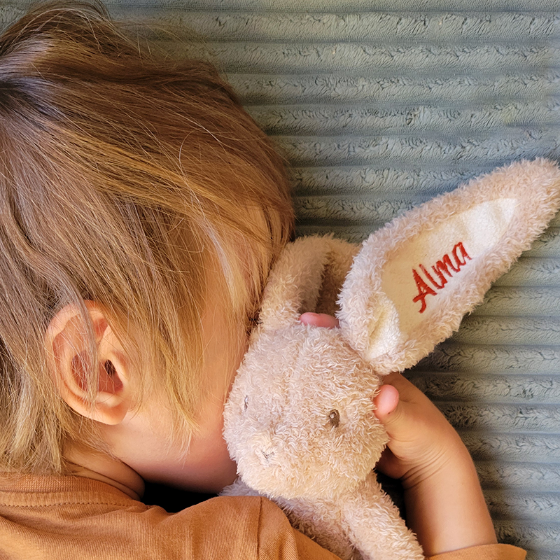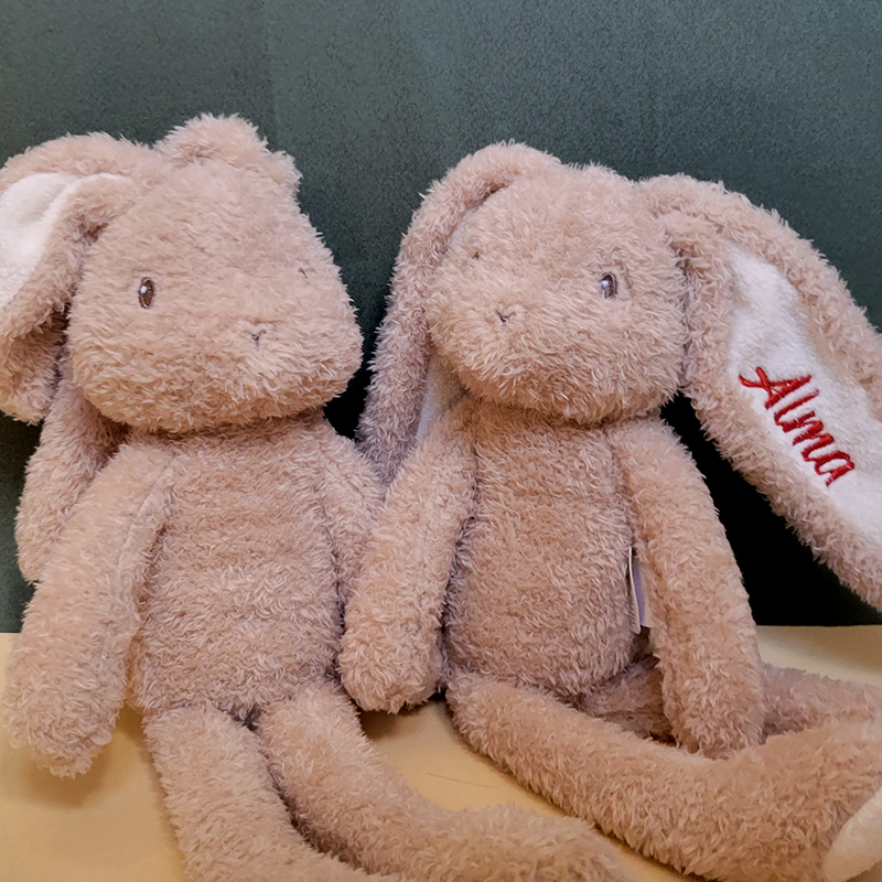 Petit lapin doudou trop mignon, idéal  pour un cadeau de naissance. Son toucher velours "poilu" est parfait pour les bébés.