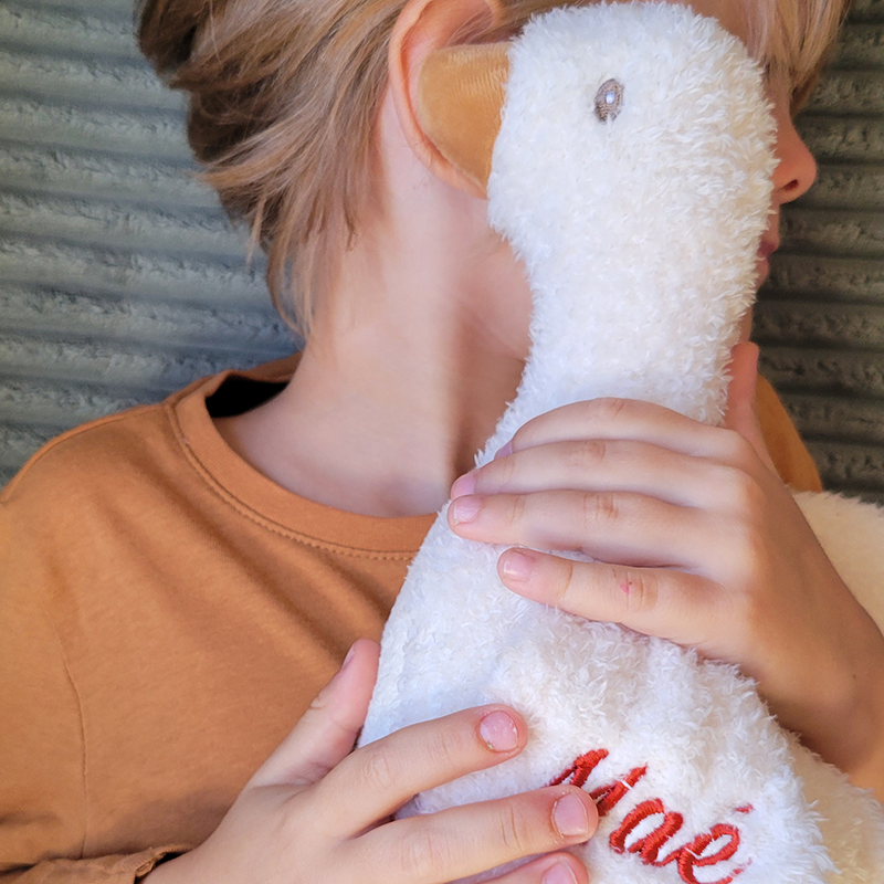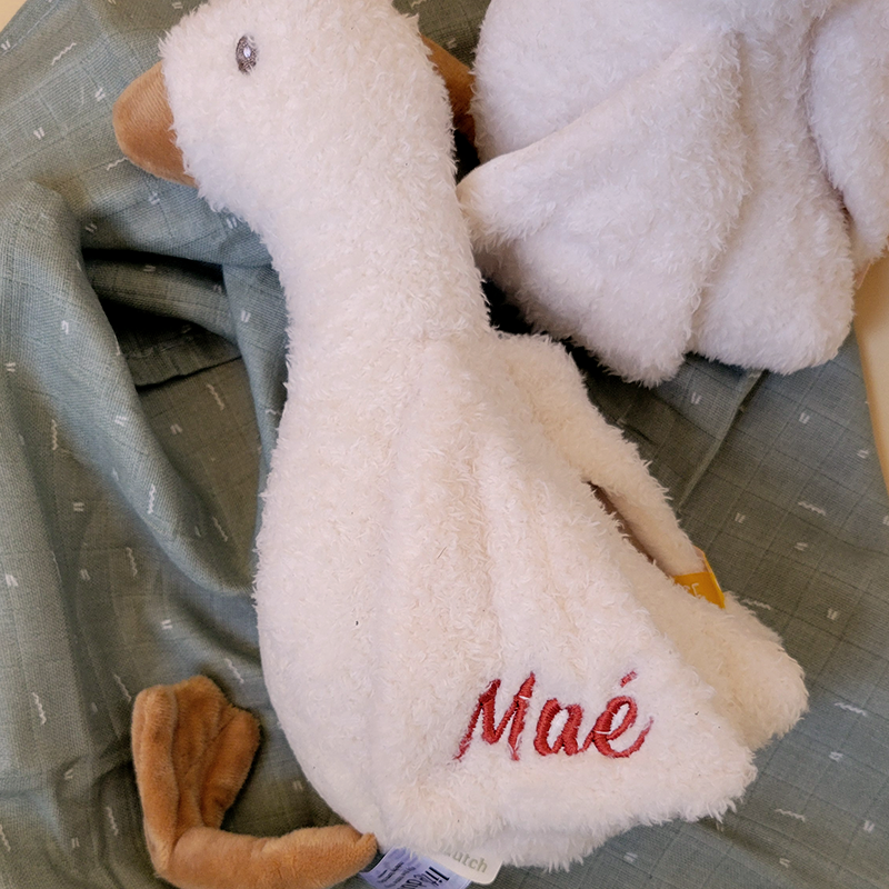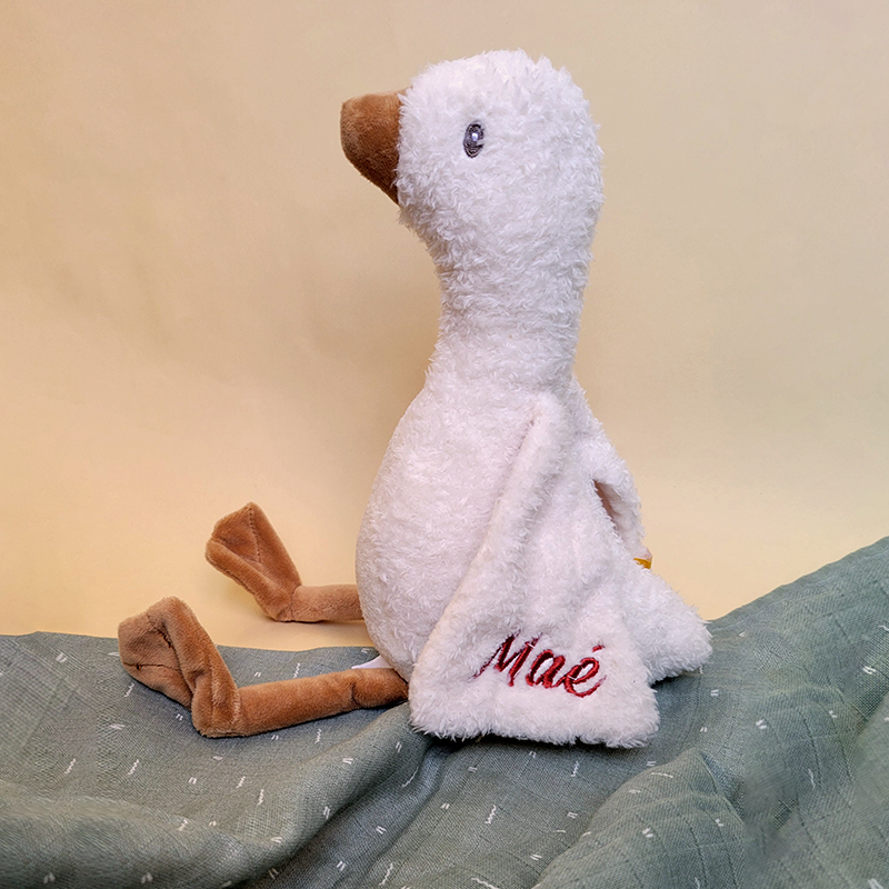 Doudou oie au toucher tout doux, parfait pour un petit cadeau de naissance.  Cette peluche deviendra vite la favorite de bébé !